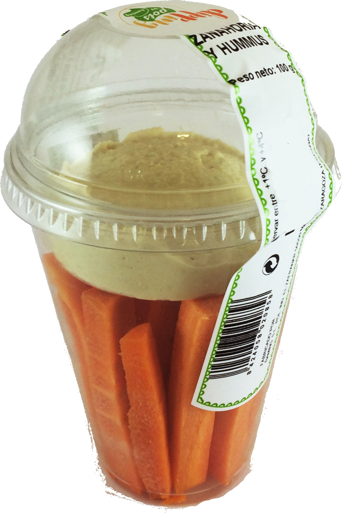 Un snack práctico y saludable: palitos de zanahoria fresca listos para mojar en un cremoso hummus. Una combinación ligera, sabrosa y nutritiva, perfecta para picar entre horas o llevar a cualquier parte.