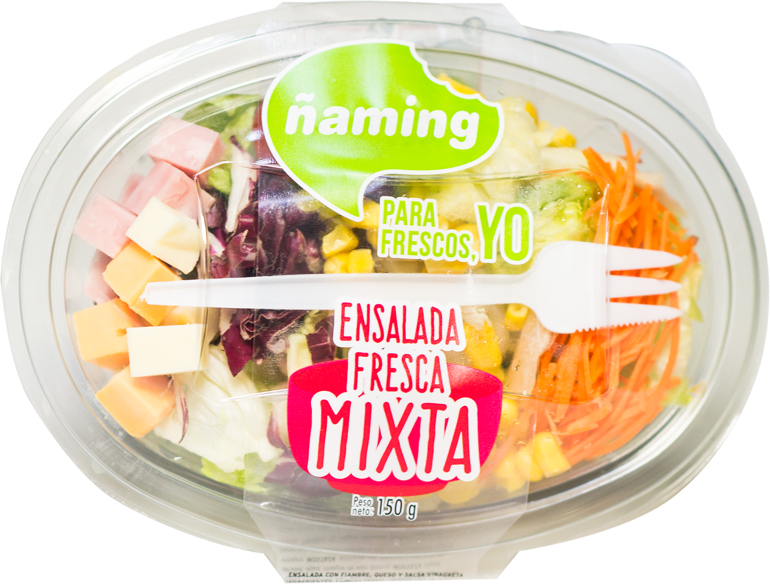 Una ensalada completa y sabrosa con fiambre de carne, queso, vegetales frescos y el aliño perfecto: vinagre de vino y aceite de oliva virgen extra de origen español. Una combinación equilibrada y práctica, ideal para disfrutar de una comida ligera y llena de sabor.