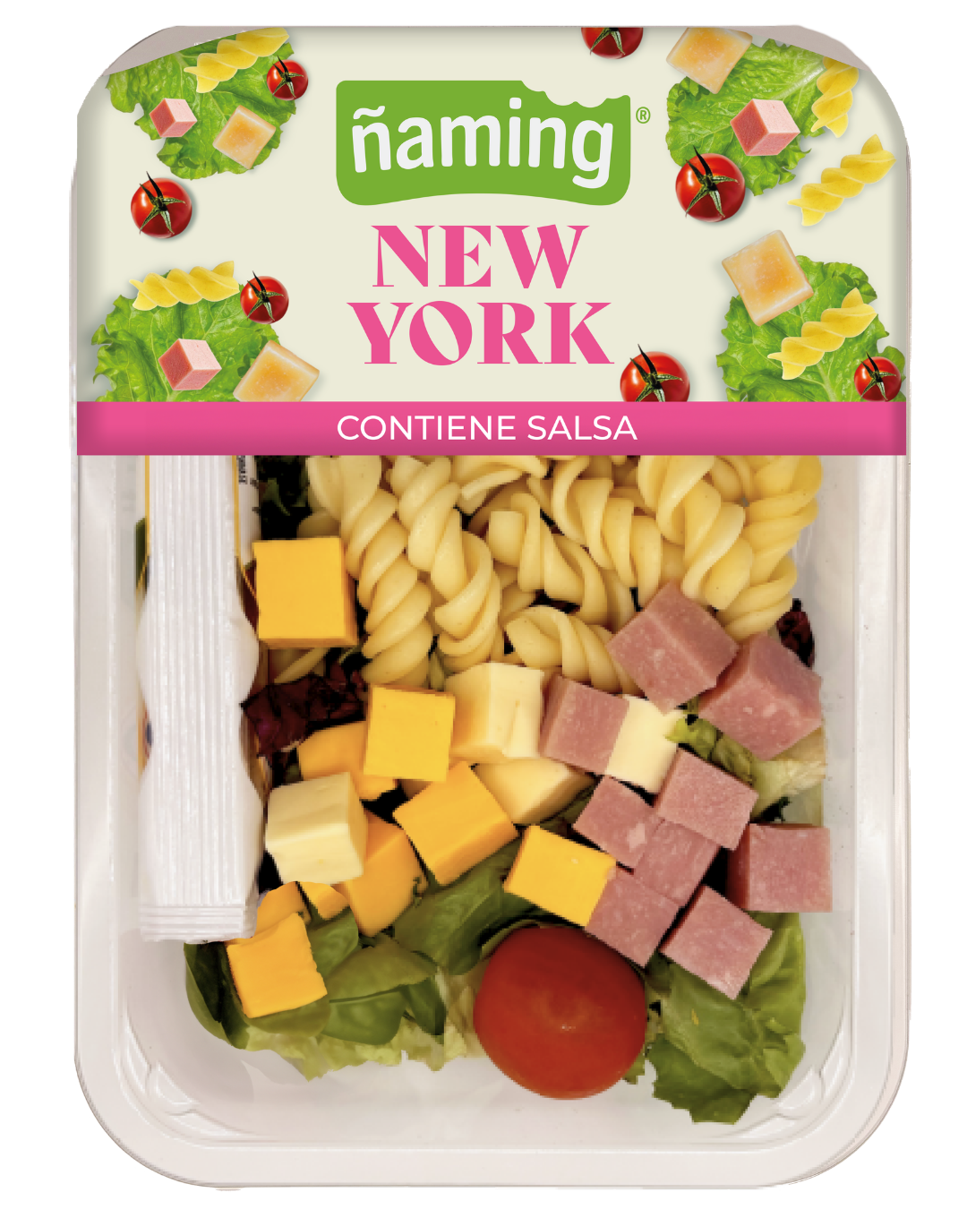 Una ensalada completa y sabrosa con pasta, jamón, queso y vegetales frescos, acompañada de su salsa para mezclar al gusto. Presentada en un envase renovado, práctico y listo para consumir en cualquier momento.