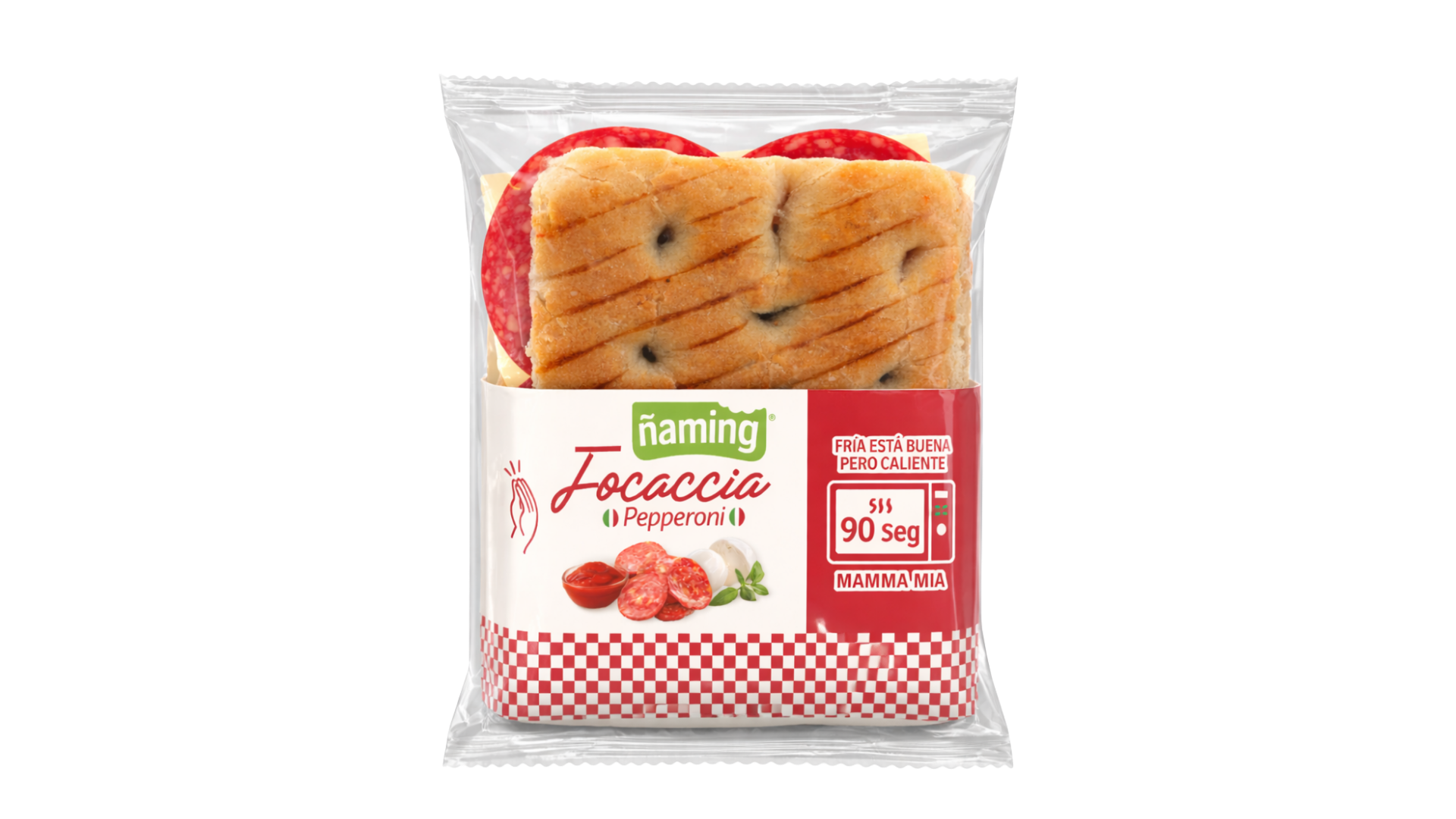 La focaccia que no pasa desapercibida. Pan tierno y esponjoso, con ese toque artesanal que engancha desde el primer bocado, relleno de pepperoni con carácter y mozzarella.